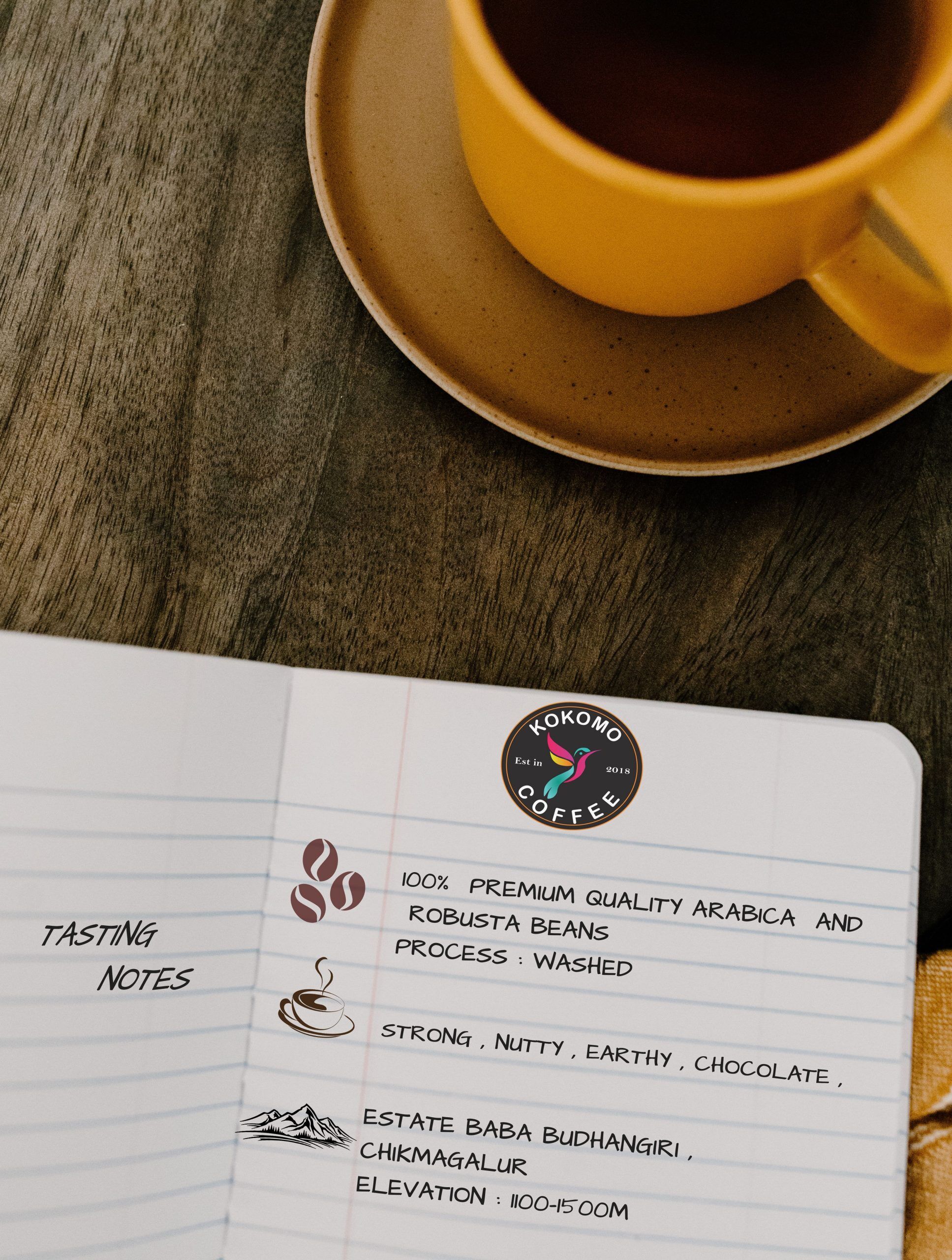 coffee beans, made with the finest beans from Indian plantations.